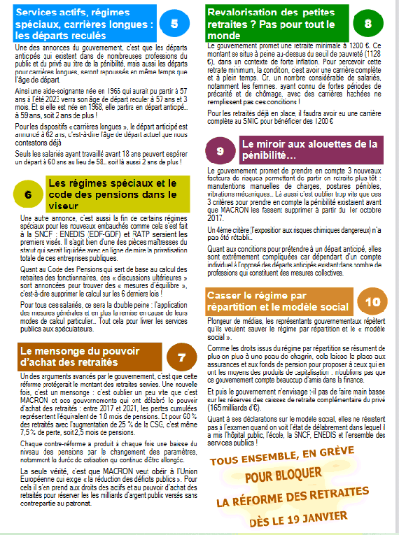 Face à la propagande gouvernementale, retrouvez les 10 raisons pour le retrait de la réforme des retraites ci-dessous :