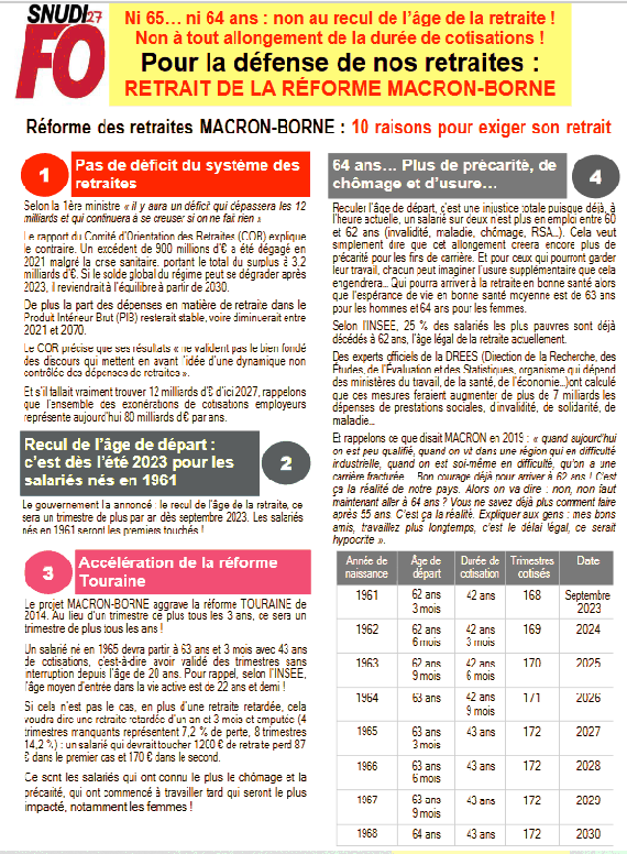 Pour la défense de nos retraites : RETRAIT DE LA RÉFORME MACRON-BORNE